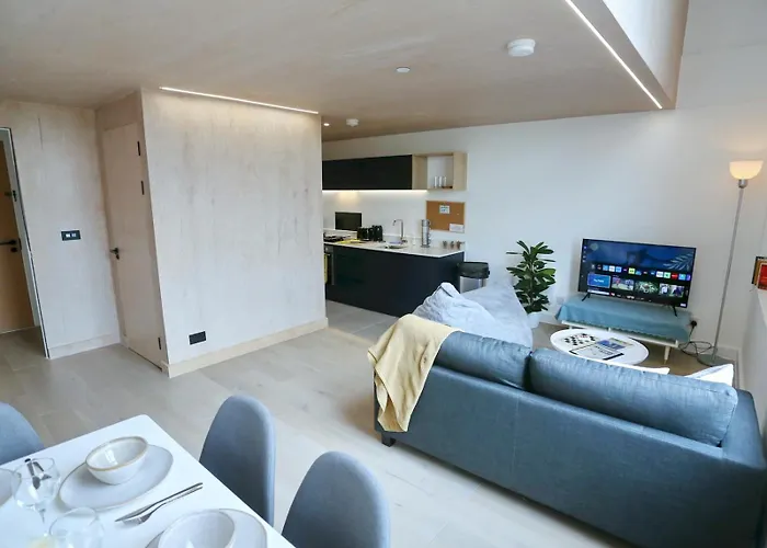 Frente a la ciudad, el Central Trafford Duplex - Pass The Keys Mánchester acoje a los viajeros en una zona residencial, a tan solo 1 km del Museo de Ciencia e Industria. También hay Wi-Fi para que los huéspedes puedan entretenerse o trabajar.